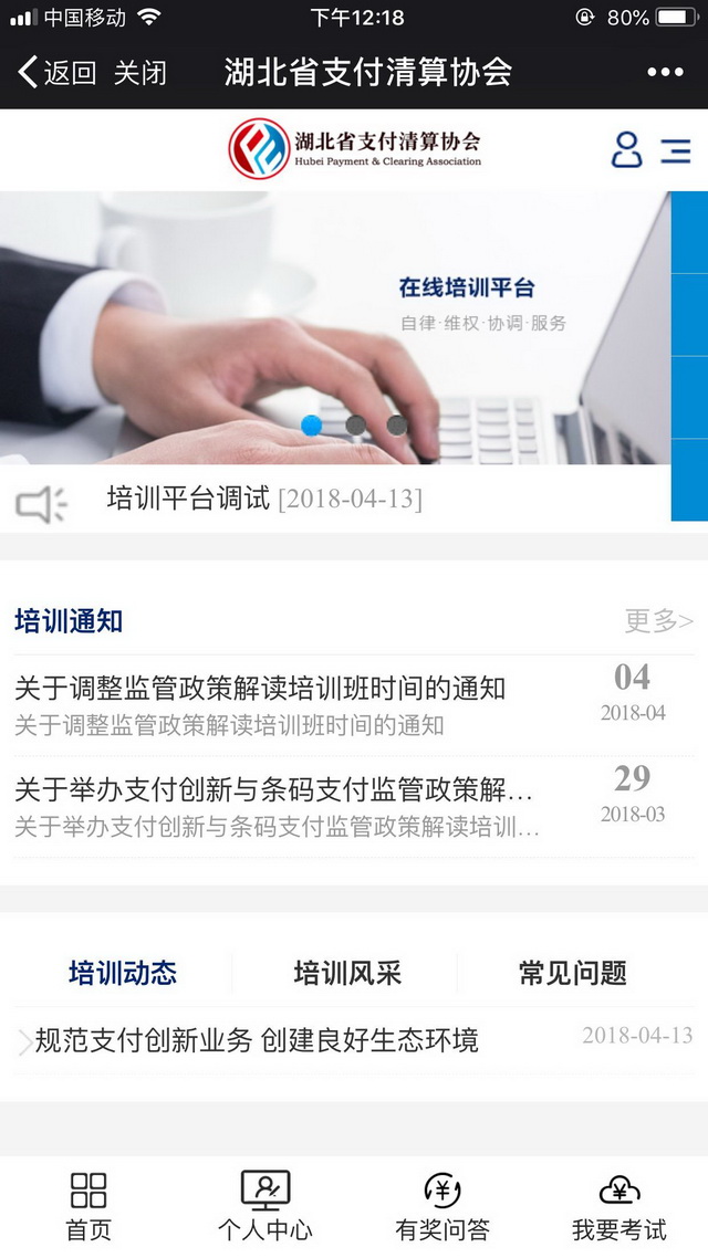 由海創(chuàng)網(wǎng)絡為湖北銀聯(lián)支付清算協(xié)會自主研發(fā)的微信在線考試系統(tǒng)于日前正式上線運營,該系統(tǒng)可以實現(xiàn)微信會員同步注冊登錄、成員培訓會議在線報名及簽到、在線考試、在線成績、在線積分等,感謝湖北銀聯(lián)支付清算協(xié)會各位領導的大力支持!