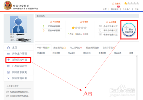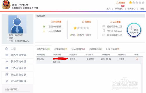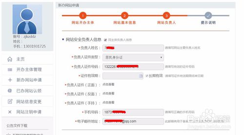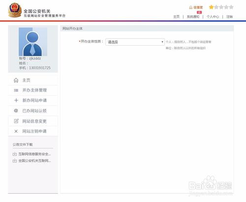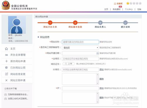 回到后臺(tái)主頁,點(diǎn)擊”新辦網(wǎng)站申請“,然后進(jìn)入網(wǎng)站開辦主體信息頁瀏覽,確認(rèn)無誤后點(diǎn)擊下一步;