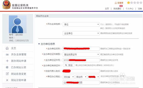 因?yàn)槭鞘状巫裕瑫?huì)提示你先填寫“主板主體”。選擇”單位“,下級(jí)菜單選擇”單位企業(yè)“,在主板單位信息中,根據(jù)實(shí)際情況填寫。下拉,在負(fù)責(zé)人信息中填寫網(wǎng)站管理人員的信息,一般最好用法人信息。然后點(diǎn)擊”提交審核“?;臼敲脒^。然后就可以開始添加網(wǎng)站備案了。