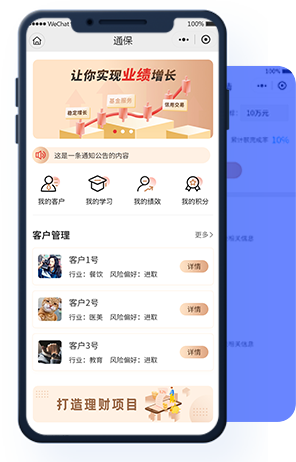 通過小程序可以幫助團(tuán)隊管理員工,獲取目標(biāo)人群、拓展業(yè)績、提供培訓(xùn)、績效管理等多項業(yè)務(wù)布局。